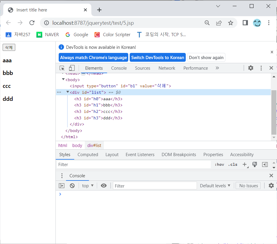 html() : 태그 사이의 텍스트와 태그를 읽고 씀. 태그는 실행
