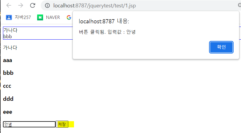 <input type= "text" id = "t1"><input type = "button" id = "b1" value = "저장">