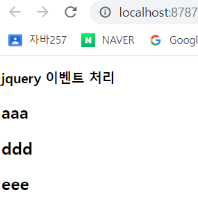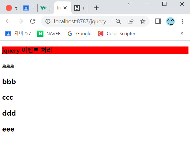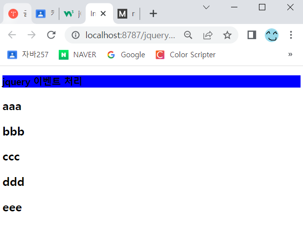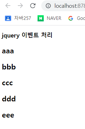 $(요소).이벤트명(function(){ //이벤트 처리 });