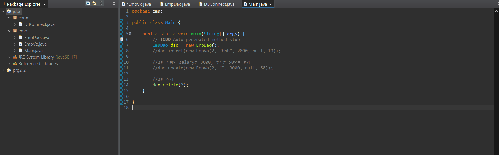 [JAVA, Oracle] emp vo, dao, main Day16 본문