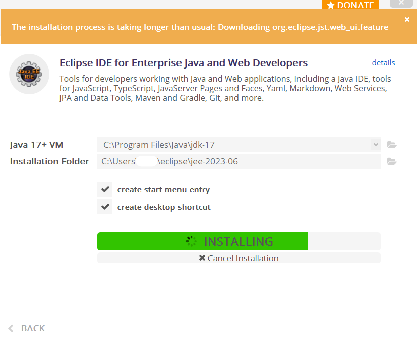 ▶ 3-4 JAVA 17+ VM에서 이전 포스팅에서 설치한 JDK를 확인할 수 있다. 확인 후 INSTALL 클릭