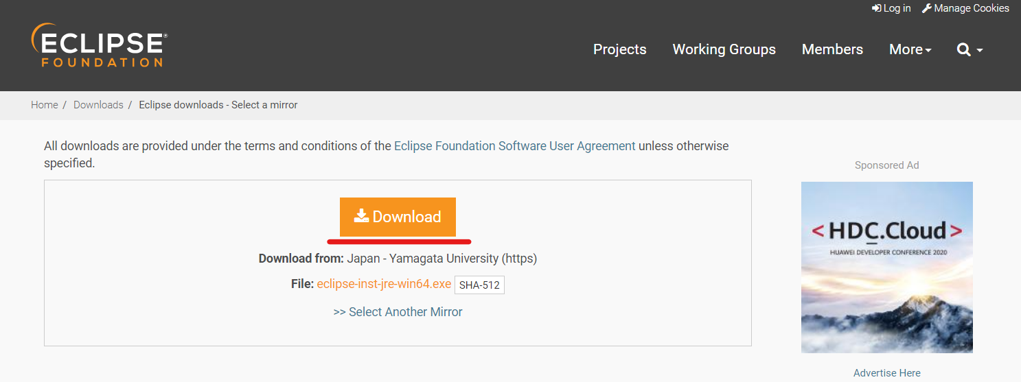 구글창에 이클립스를 검색하여 해당사이트로 접속한다