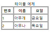 <td>2</td><td>아무나</td><td>목요일</td><br/>
