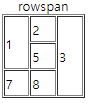 <tr><td rowspan = "2">1</td><td>2</td><td rowspan ="3">3</td></tr>