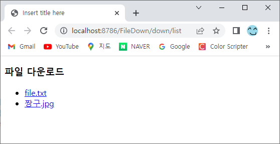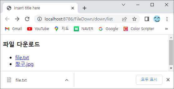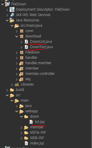 @WebServlet("/down/list") 에서 실행
